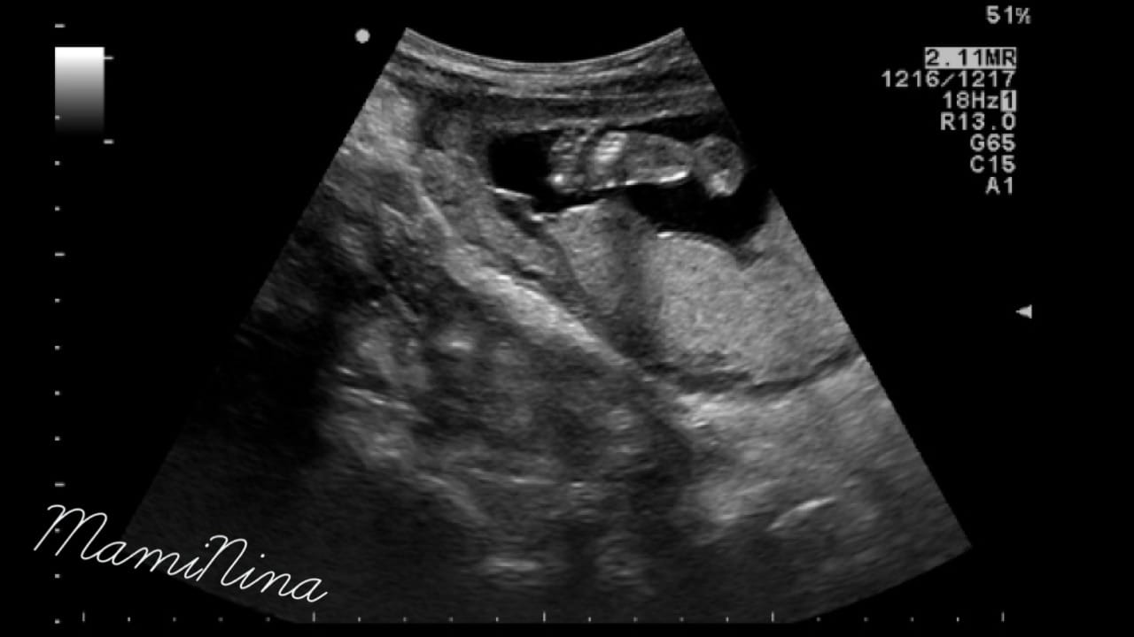 Zdravnica je izmerila dolžino maternice in pričela z ultrazvočnim pregledom. Za začetek z odličnim pogledom na utripajoči srček in njegove štiri prekate. Skozi pregled smo pregledali prav vse od začetka do konca, rokice, nogice, hrbtenico, rebra, usta, oči, res, ni da ni. Izredno se je potrudila in nama z možem pokazala vse, kar je le lahko. Pogledali smo tudi, kako je plod ravno v trenutku, ko smo opazovali profil obrazka nekaj prav na veliko pogoltnil, kar je bilo res prav zanimivo.