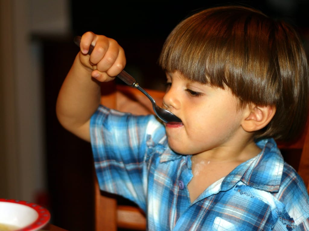 Uporaba jedilnega pribora je za mnoge otroke problem, tako da je dobro njegovo uporabo redno vaditi. To je še ena aktivnost, ki izboljšuje fino motoriko, brez katere ni niti uspešne grafomotorike (gibi, ki se izvajajo pri pisanju). Redno imejte skupne družinske obede, tako se bo otrok z opazovanjem vas sam naučil, kako uporabljati jedilni pribor.